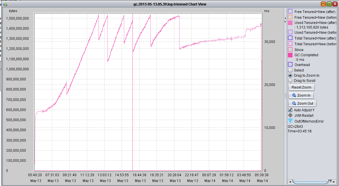 4. Opened this gc.2013-05-13.05.39.log.pp file in HPJmeter. Now HPJmeter was able to parse the log file and generate wonderful graph, that you can see below: