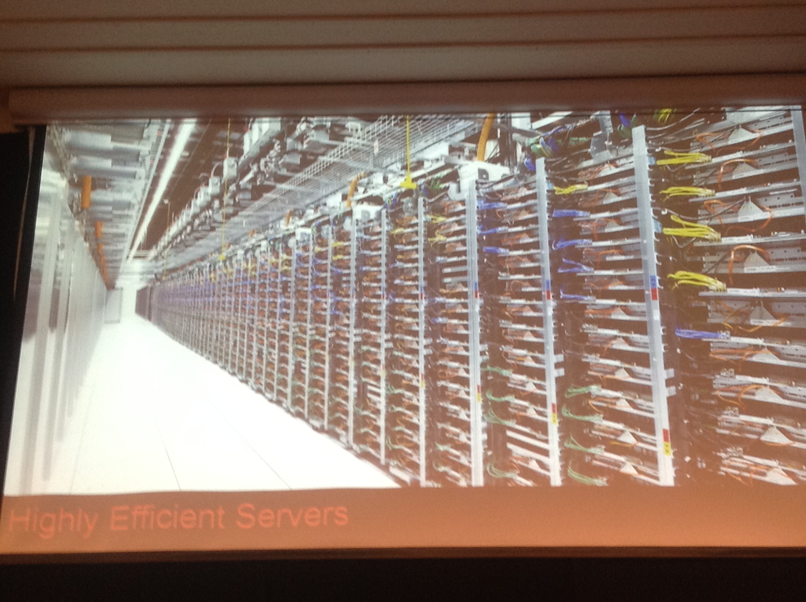 Google’s Director of Engineering Dan Strutsman started his speech by showing their data centers photographs. It was really cool. He told that but for cement concrete in their data center, everything else is built by them for high efficiency. One of my wish is to see and experience such massive datacenters in person.